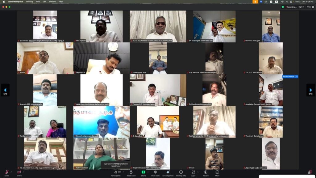சென்னையில் நேற்று (டிசம்பர் 21) வீடியோ கான்பரன்ஸ் மூலம் நடைபெற்ற திமுக மாவட்ட செயலாளர்கள், எம்.எல்.ஏ.க்கள், எம்.பிக்கள், தொகுதி பொறுப்பாளர்கள் ஆலோசனைக் கூட்டத்தில் மு.க.ஸ்டாலின் பேசியதாவது: தமிழ்நாடு முழுவதும் வாக்குச்சாவடி வாரியாக மைக்ரோ லெவலில் நான் கவனித்துக் கொண்டிருக்கிறேன். ஒரே ஒருத்தர் கூட தவறுதலாக விடுபட்டு இருந்தால் கூட அவர் வாக்காளர் பட்டியலில் இணைக்கப்பட வேண்டும். S.I.R நடைமுறையை திறம்பட எதிர்கொண்டு செயலாற்றி கொண்டிருக்கும் கழகத்தின் போர்ப்படை தளபதிகளான எல்லாருக்கும் பாராட்டுகள்!