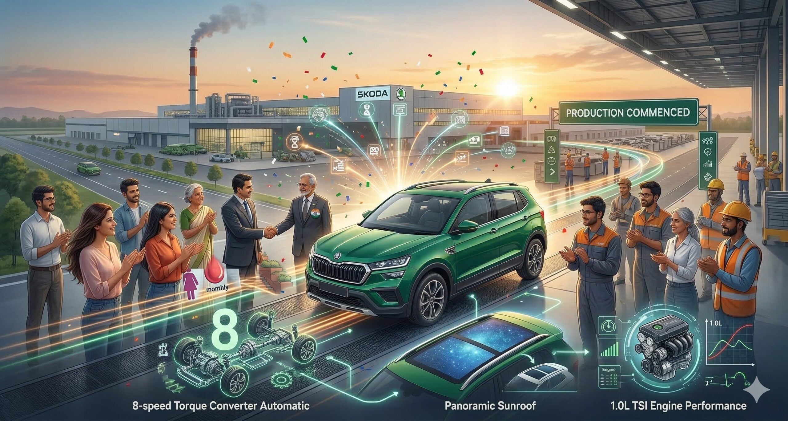 இந்தியாவின் ‘Mid-size SUV’ சந்தையில் ஒரு பிரம்மாண்டமான அலையை ஏற்படுத்திய ஸ்கோடா குஷாக், இப்போது இன்னும் அதிக வசதிகளுடன் புதிய அவதாரமெடுத்துள்ளது. Skoda Kushaq Facelift production commenced என்பது கார் ஆர்வலர்களுக்கு ஒரு உற்சாகமான செய்தியாகும். சாகன் ஆலையில் (Chakan plant) இதன் உற்பத்தி அதிகாரப்பூர்வமாகத் தொடங்கப்பட்டுள்ளது. இந்த புதிய அப்டேட்டில், தொழில்நுட்ப ரீதியாக ஒரு மிகப்பெரிய மாற்றம் செய்யப்பட்டுள்ளது. குறிப்பாக, 1.0L TSI இன்ஜினுக்கு இப்போது புதிய 8-speed torque converter automatic கியர்பாக்ஸ் அறிமுகப்படுத்தப்பட்டுள்ளது. இது காரின் ஓட்டும் தன்மையை (Driving dynamics) அடுத்த லெவலுக்குக் கொண்டு செல்லும் என எதிர்பார்க்கப்படுகிறது.