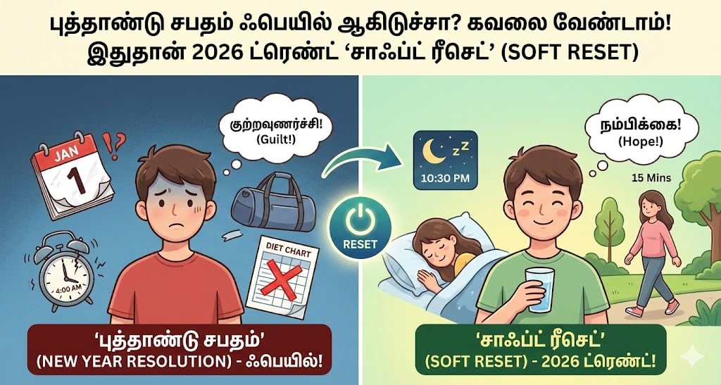 ஏன் இது சிறந்தது? கடினமான இலக்குகள் நமக்கு மன அழுத்தத்தைத் (Stress) தரும். ஆனால், ‘சாஃப்ட் ரீசெட்’ நமக்கு வெற்றியைத் தரும். சிறிய மாற்றங்களைச் செய்யும்போது, “பரவாயில்லையே, நம்மால் முடிகிறதே,” என்ற நம்பிக்கை பிறக்கும். அந்த நம்பிக்கைதான் பெரிய மாற்றங்களுக்கான விதை.