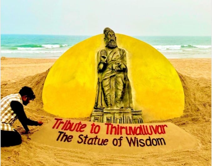 அதோடு, தமிழகம் முழுவதும் திருவள்ளுவர் தினமும் கொண்டாடப்பட்டது. இந்த நிலையில், திருவள்ளுவர் தினத்தை முன்னிட்டு பிரபல மணற்சிற்பக் கலைஞர் சுதர்சன் பட்நாயக், ஒடிசாவின் பூரி கடற்கரையில் திருவள்ளுவர் உருவத்தை மணற்சிற்பமாக வடிவமைத்துள்ளார்.