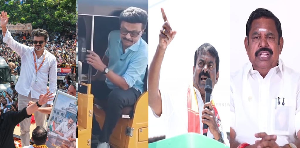 சென்னை நந்தனம் பகுதியில் நடந்த தவெக இறுதி கட்ட பிரச்சாரத்தில் அனல் பறக்க பேசிய விஜய், பிரதமர் மோடி, தமிழ்நாடு முதல்வர் ஸ்டாலின், எதிர்க்கட்சித் தலைவர் எடப்பாடி பழனிசாமி என அனைவரையும் கடுமையாக விமர்சித்தார்.