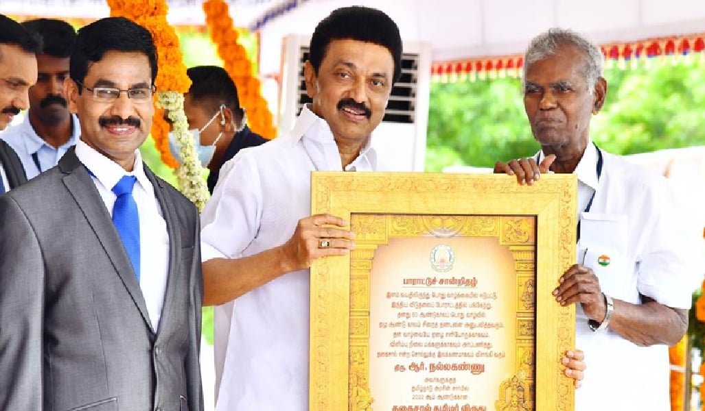 முத்தமிழறிஞர் கலைஞர் தமது ஆட்சிக் காலத்தில் தோழர் நல்லகண்ணு அவர்களுக்கு அம்பேத்கர் விருதை வழங்கிச் சிறப்பித்தார். நமது திராவிட மாடல் அரசின் சார்பில் தோழர் அவர்களுக்குத் தகைசால் தமிழர் விருதை வழங்கும் வாய்ப்பைப் பெற்றது எனது பெரும் பேறு!