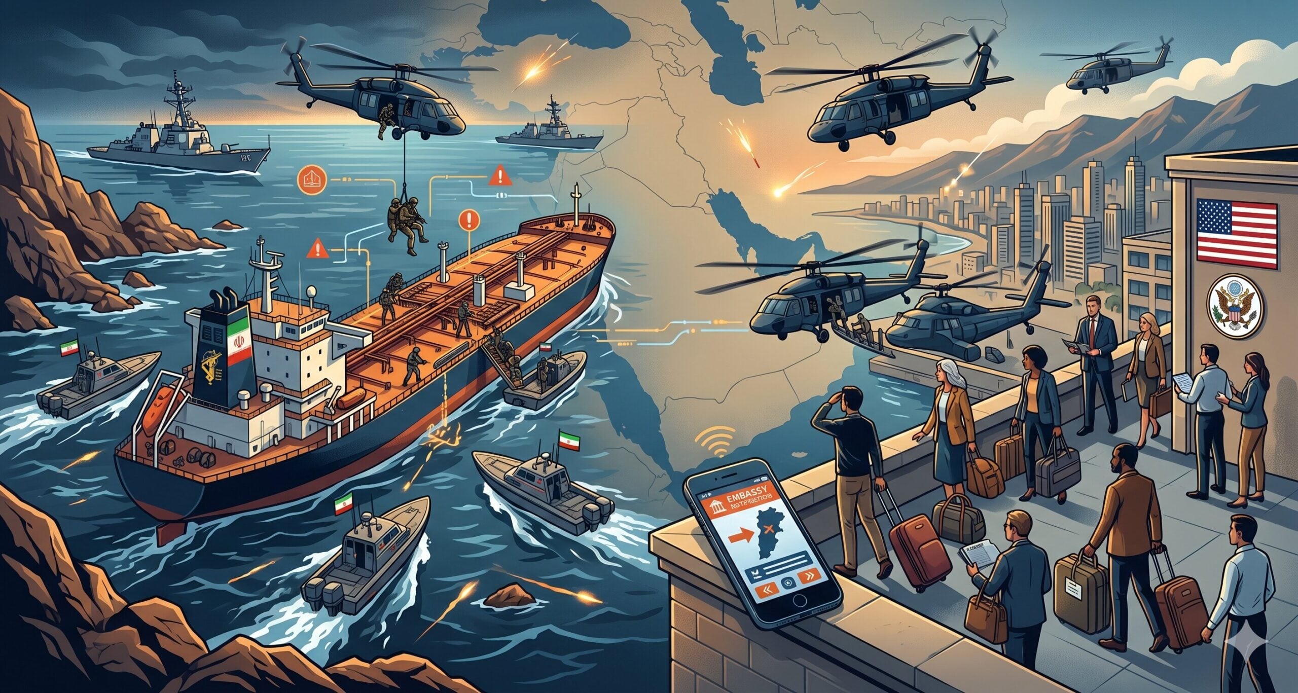 உலகமே உற்று நோக்கும் மத்திய கிழக்கு பகுதியில் மீண்டும் ஒரு பதற்றமான சூழல் உருவாகியுள்ளது. ஒருபுறம் கடலில் கப்பல்கள் சிறைபிடிக்கப்பட, மறுபுறம் ஒரு நாட்டை விட்டே வெளியேறுமாறு அமெரிக்கா தனது குடிமக்களுக்கு உத்தரவிட்டுள்ளது. என்ன நடக்கிறது அங்கே?
