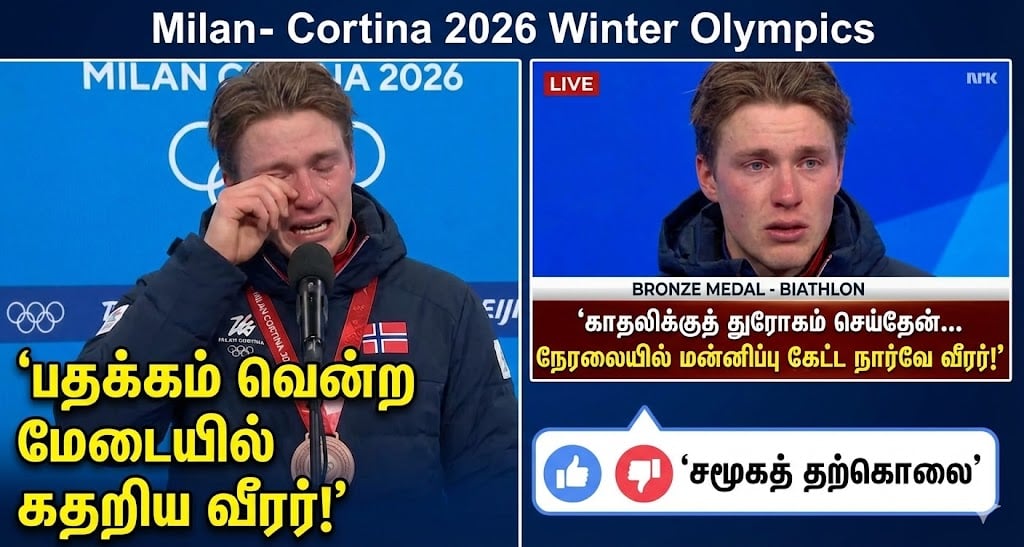 மிலன்-கார்டினா (Milan-Cortina) 2026 குளிர்கால ஒலிம்பிக் போட்டிகளில், ஆண்களுக்கான பயத்லான் (Biathlon) 20 கி.மீ பந்தயத்தில் வெண்கலப் பதக்கம் வென்ற நார்வே நாட்டு வீரர் ஸ்டர்லா ஹோம் லாக்ரிட் (Sturla Holm Laegreid), பதக்கத்தைப் பெற்றுக் கொண்ட கையோடு நேரலையில் (Live TV) செய்த ஒரு காரியம் உலகத்தையே அதிர்ச்சியில் ஆழ்த்தியுள்ளது.
