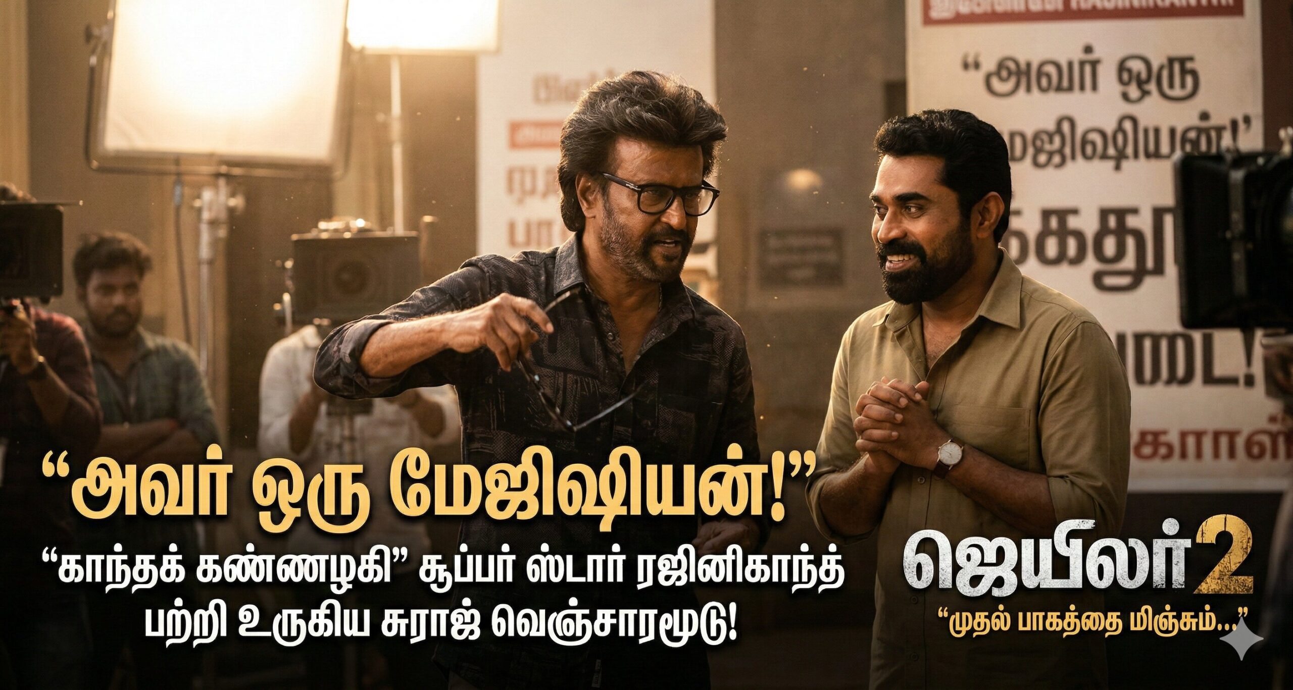 திரைப்படங்களில் ரஜினிகாந்தின் ஸ்டைலை பார்த்து ரசிக்காதவர்கள் யாரும் இருக்க முடியாது. ஆனால், கேமராவுக்கு பின்னால் அவர் எப்படி இருப்பார் என்பதைச் சுராஜ் மிக அழகாக விவரித்துள்ளார். “ரஜினி சார் ஒரு மேஜிஷியன் (Magician). ஒவ்வொரு காட்சியிலும், ஒவ்வொரு ஷாட்டிலும் அவர் நம்மை ஆச்சரியப்படுத்துகிறார். அவரோடு திரையைப் பகிர்ந்து கொள்வது என்பது எனக்குக் கிடைத்த மிகப்பெரிய கௌரவம் மற்றும் பாக்கியம்” என்று அவர் நெகிழ்ச்சியுடன் தெரிவித்துள்ளார்.
