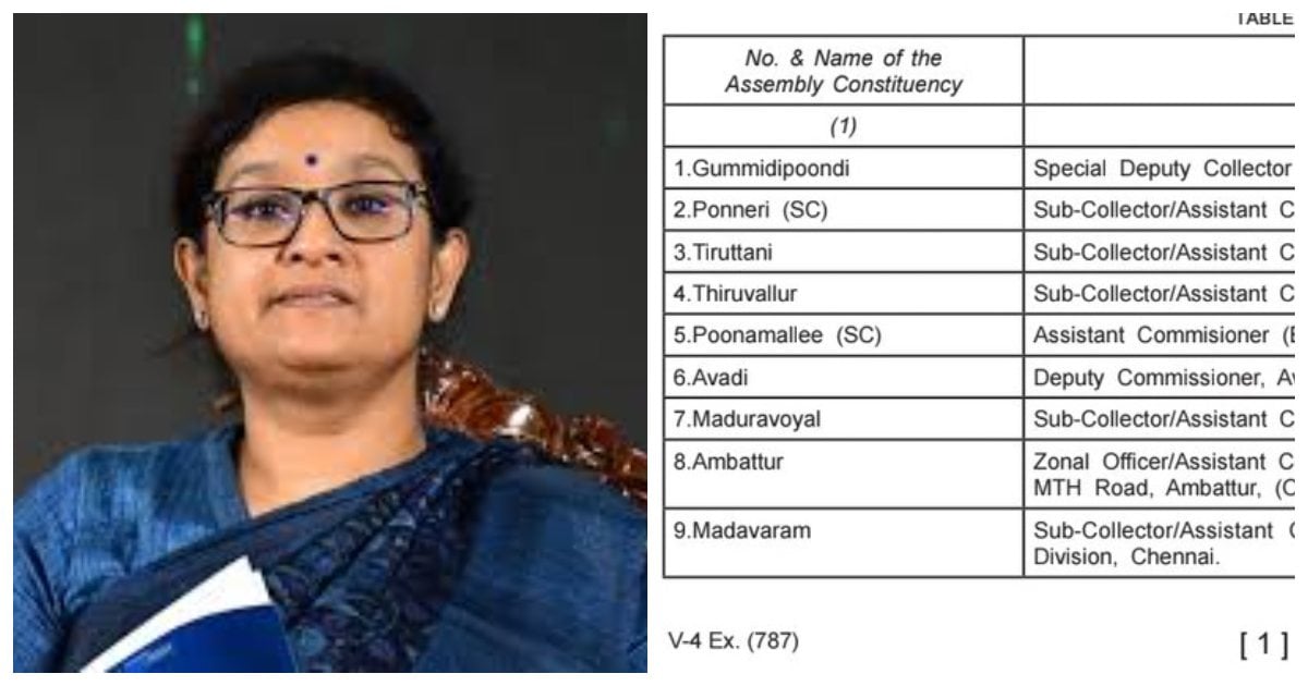 - முதல்வர் ஸ்டாலினின் கொளத்தூர் சட்டமன்ற தொகுதி தேர்தல் அதிகாரியாக, கலால் துறையின் சேப்பாக்கம் பகுதி இணை ஆணையர்