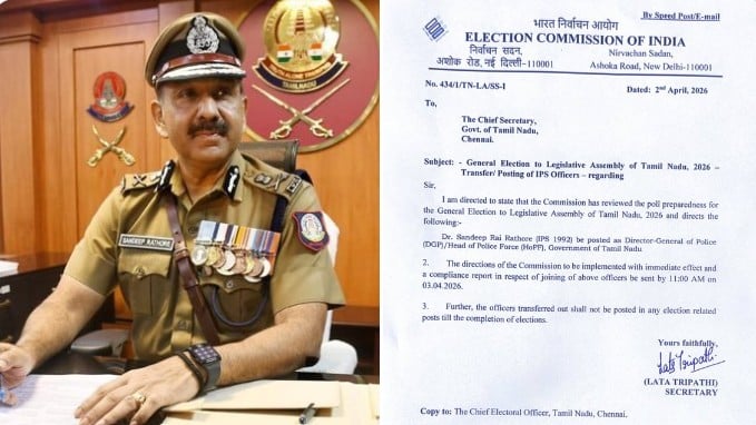 தேர்தல் ஆணையத்தின் செயலாளர் லதா திரிபாதி இன்று (ஏப்ரல் 2) வெளியிட்டுள்ள அதிகாரப்பூர்வ அறிவிப்பின்படி, சந்தீப் ராய் ரத்தோர் (1992) தமிழகத்தின் புதிய காவல்துறை தலைமை இயக்குநராக நியமிக்கப்பட்டுள்ளார்.