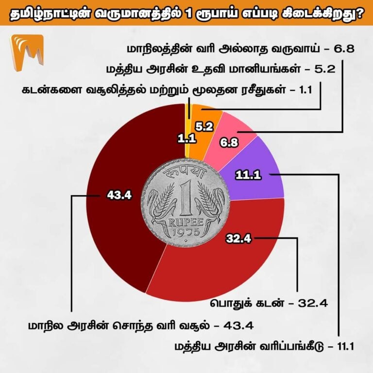 தமிழ்நாட்டின் நிதி வரவைப் பொறுத்தவரை ஒவ்வொரு ஒரு ரூபாயிலும் எத்தனை பைசா எங்கிருந்து வருகிறது என்பதை முதலில் பார்க்கலாம்.