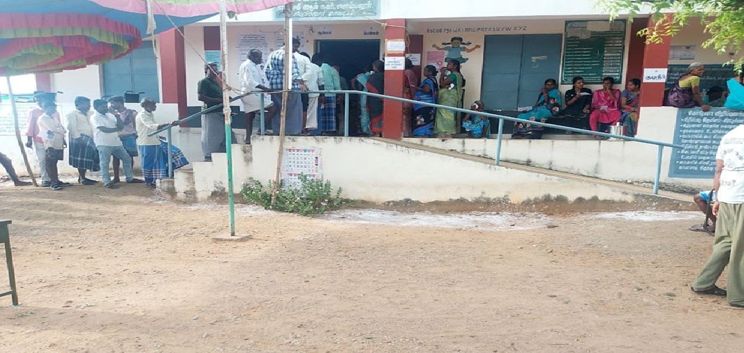 கொளுத்தும் வெயிலையும் பொருட்படுத்தாமல் வாக்காளர்கள் நீண்ட வரிசையில் நின்று வாக்களித்து வருகின்றனர்.