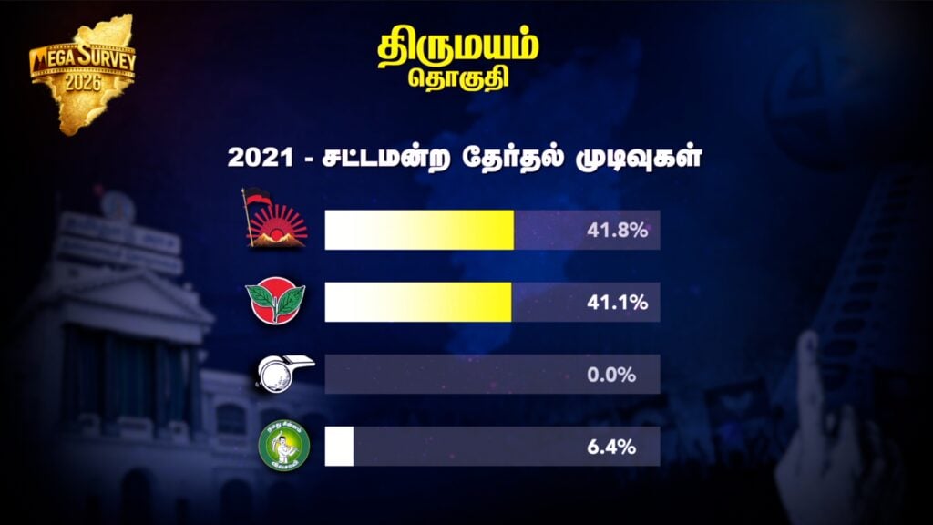 இதில் திருமயம் சட்டப்பேரவைத் தொகுதியை கைப்பற்றப்போவது யார் என பார்க்கலாம்…