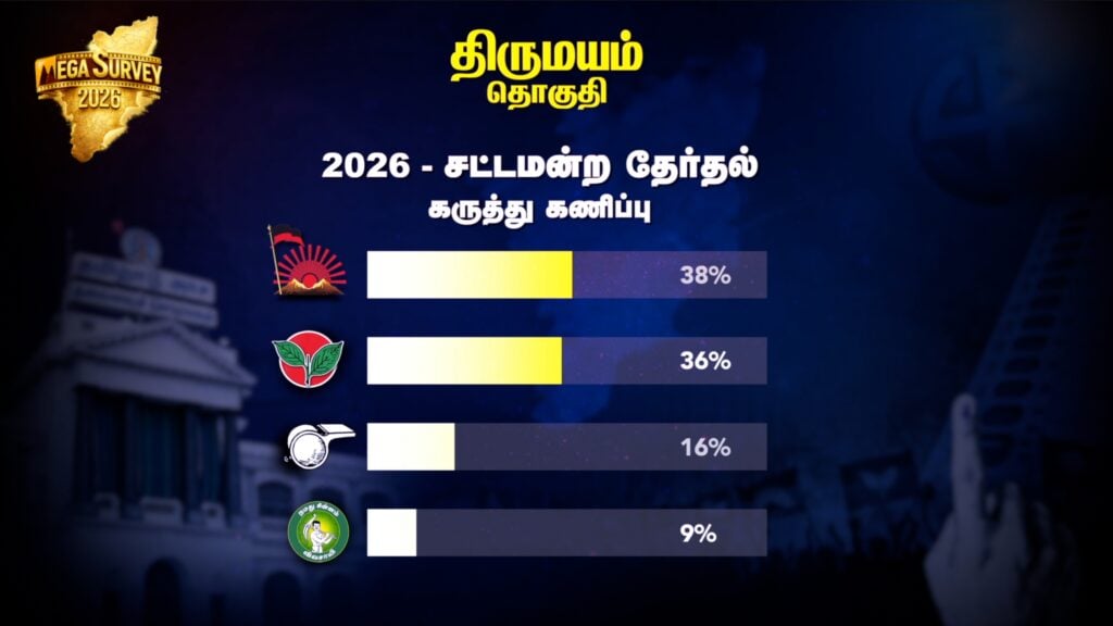 திமுக வேட்பாளரான அமைச்சர் ரகுபதி மீண்டும் திருமயம் தொகுதியில் வெற்றி பெற வாய்ப்பிருக்கிறது.
