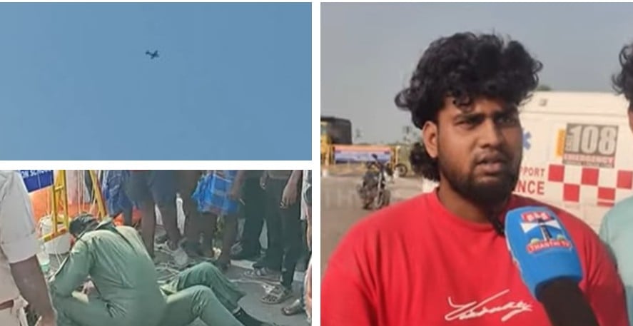 இந்நிலையில் பாராசூட் மூலம் குதித்த விமானியை காப்பாற்றிய திருப்போரூரைச் சேர்ந்த மவுலீஸ் கூறுகையில், ‘நானும் என் தம்பியும் களனிக்கு சென்று கொண்டிருந்தோம் அப்போது திடீரென பலத்த சத்தம் கேட்டது. திரும்பி பார்த்தால் ஏரோப்ளேன் விழுந்து கிடந்தது. விமானி பறந்து வந்து கொண்டிருந்தார். அப்போது பைக்கில் சென்று ஹார்ன் அடித்து அவரை கீழே வர சொன்னோம், வந்ததும் அவரை நானும் தம்பியும் தான் பிடித்தோம். மூச்சு விட முடியாமல் சிரமப்பட்டார். அவருக்கு தண்னீர் கொடுத்து முதுகில் தட்டி கொடுத்தோம். அதன் பிறகு ஆம்புலன்ஸ் மற்றும் போலீஸுக்கு தகவல் கொடுத்தோம்” என்றார்.