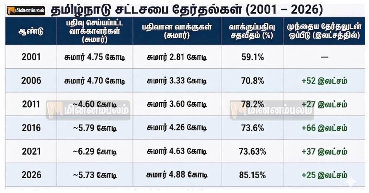 ஆனால் 2026 தேர்தலில் 2021-ம் ஆண்டை விட கூடுதலாக 25 லட்சம் பேர் மட்டுமே வாக்களித்துள்ளனர்.