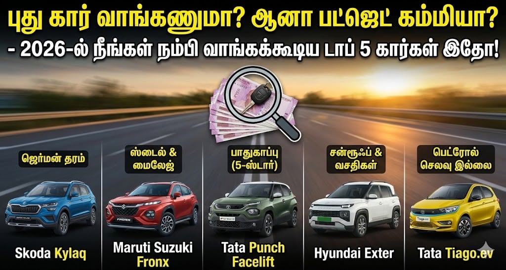 2026 பிறந்துவிட்டது. ஒரு காலத்தில் ‘பட்ஜெட் கார்’ (Budget Cars) என்றால் நான்கு சக்கரங்கள், ஒரு ஸ்டீயரிங் மட்டும்தான் இருக்கும். ஆனால் இப்போது நிலைமை வேறு. 10 லட்ச ரூபாய்க்குள் இப்போது சன்ரூஃப் (Sunroof), 6 ஏர்பேக்ஸ், டச் ஸ்கிரீன் என எல்லாம் கிடைக்கிறது.