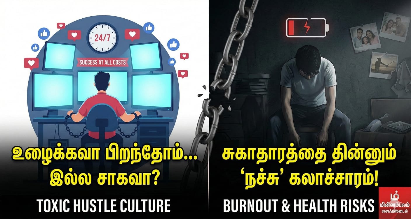 “தூக்கம் என்பது பலவீனமானவர்களுக்கு”, “வெற்றி பெற வேண்டுமென்றால் 18 மணி நேரம் உழைக்க வேண்டும்” – இதுபோன்ற வாசகங்களை இன்ஸ்டாகிராம் ரீல்ஸிலும், லிங்க்ட்-இன் (LinkedIn) பக்கங்களிலும் அடிக்கடி பார்க்கிறோம். இடைவிடாமல் ஓடிக்கொண்டே இருப்பதை, ஓய்வே எடுக்காமல் உழைப்பதை ஒரு கௌரவமாக நினைக்கும் இந்த மனநிலைக்குப் பெயர்தான் ‘ஹஸில் கல்ச்சர்’ (Hustle Culture).