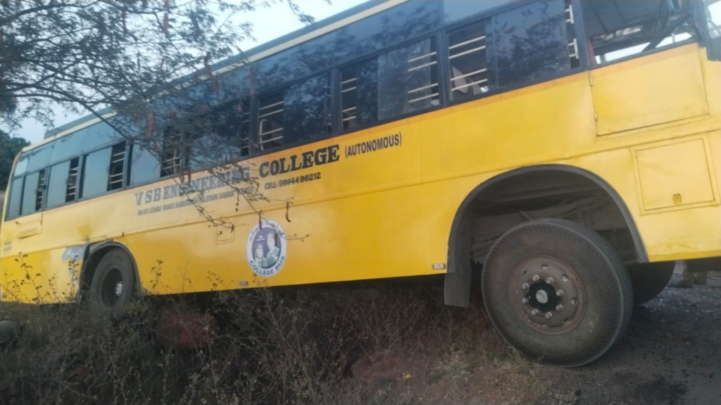 கரூர் வெள்ளியணை பகுதியில் உள்ள தண்டவாளத்தை கடக்கும்போது விஎஸ்பி கல்லூரி பேருந்து தண்டவாளத்தில் சிக்கியதாக தகவல்கள் வருகின்றன. அப்போது அந்த வழியாக வந்த சரக்கு ரயில் கல்லூரி பேருந்து மீது மோதி கோர விபத்து ஏற்பட்டது.
