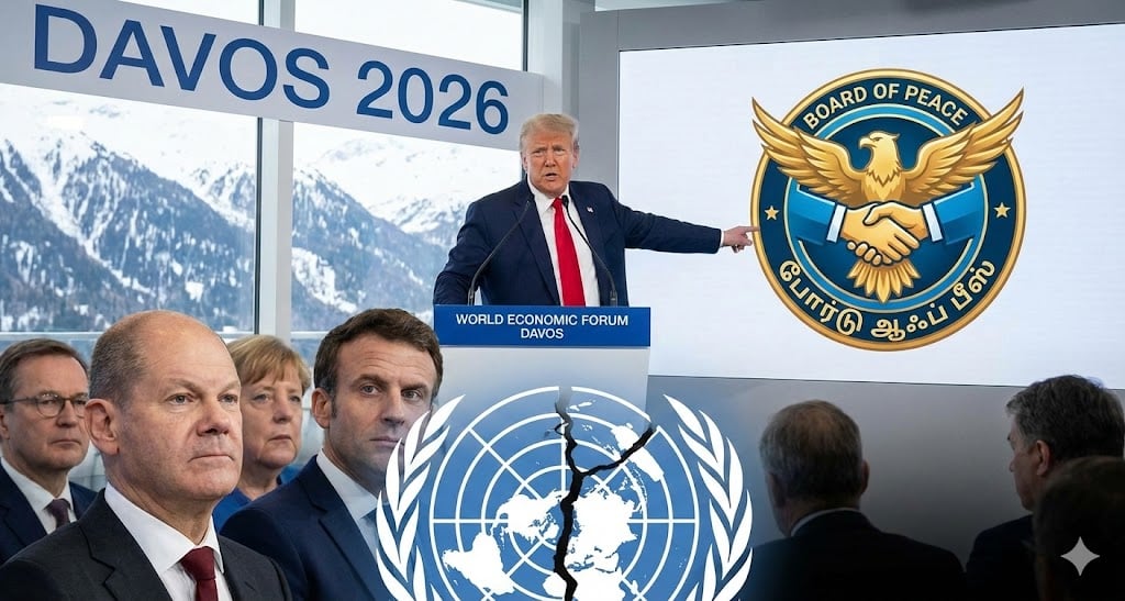 சுவிட்சர்லாந்தின் டாவோஸ் (Davos) நகரில் நடைபெறும் உலகப் பொருளாதார மன்றத்தில், உலகத் தலைவர்கள் காலநிலை மாற்றம் மற்றும் வர்த்தகம் பற்றிப் பேசிக்கொண்டிருந்தபோது, அமெரிக்க அதிபர் டொனால்ட் டிரம்ப் (Donald Trump) வீசிய அந்த ஒற்றை அறிவிப்பு, அரங்கத்தையே உலுக்கியுள்ளது. அதுதான் ‘போர்டு ஆஃப் பீஸ்’ (Board of Peace).