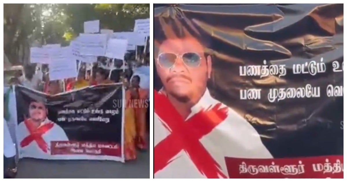 இந்நிலையில் திருவள்ளூர் மத்திய மாவட்ட செயலாளர் மணிகண்டன் மீது பல்வேறு குற்றச்சாட்டுகளை முன்வைத்து பனையூரில் உள்ள தவெக அலுவலகம் முன்பாக 100-க்கும் மேற்பட்ட ஆண், பெண் நிர்வாகிகள் இன்று டிசம்பர் 14-ந் தேதி ஒன்று திரண்டனர். தவெக தலைமை அலுவலகம் நோக்கி பேரணியாக வந்து போராட்டம் நடத்தினர்.