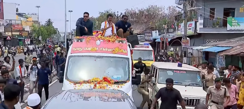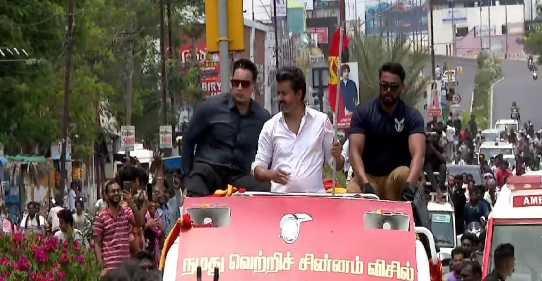 தமிழக வெற்றிக் கழக தலைவர் விஜய் புதுச்சேரியில் இன்று (ஏப்ரல் 4) பிரச்சாரம் மேற்கொண்டார்.