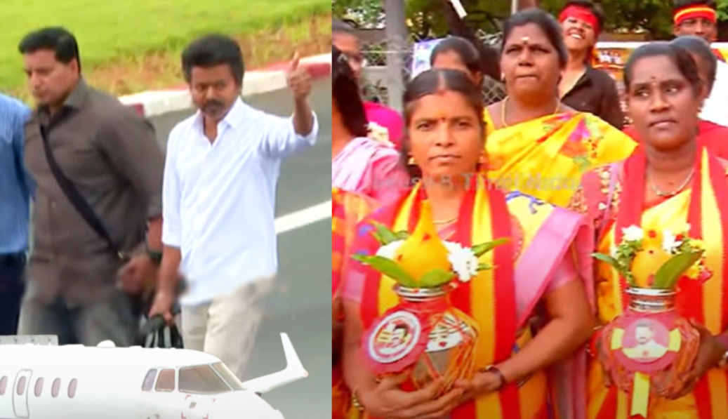 இதற்கிடையே திருச்சி விமான நிலையத்தில் வந்திறங்கும் விஜய்யை வரவேற்பதற்காக தவெக தொண்டர்கள் பெருமளவில் காலை முதலே குவிந்து வருகின்றனர். தவெக நிர்வாகிகள் மேளதாளம் முழங்க, விஜய்யை வரவேற்க திரண்டுள்ளனர். விமான நிலையத்தில், ஏராளமான பெண்கள் பால் குடங்களுடன் விஜய்யை வரவேற்க காத்திருக்கின்றனர்.