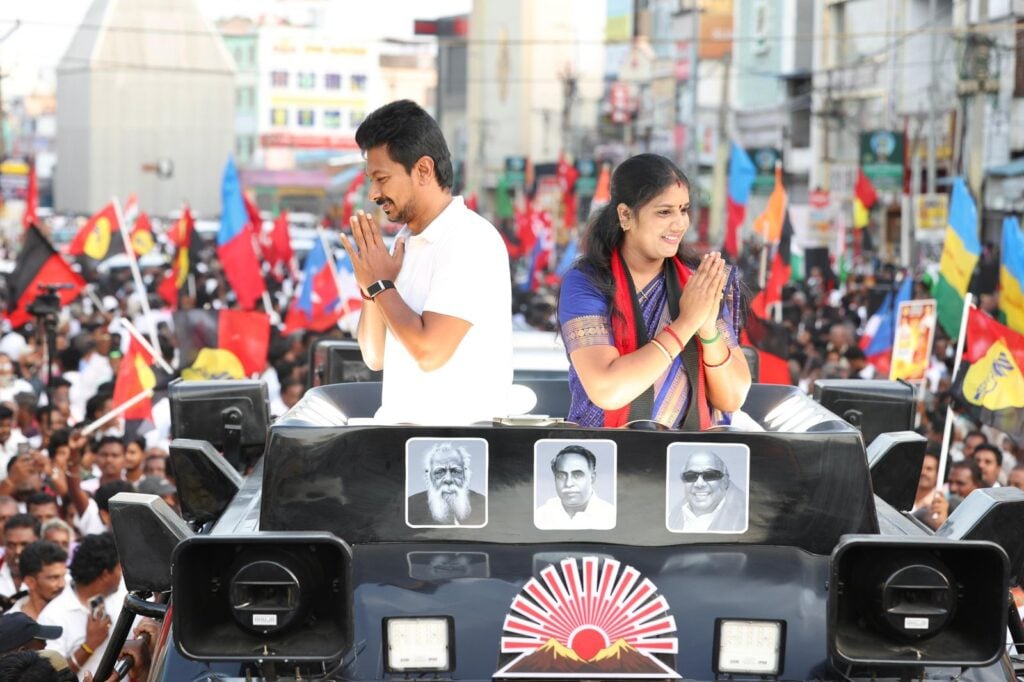 இந்நிலையில், தமிழக துணை முதல்வர் உதயநிதி ஸ்டாலின் இன்று முதல் தனது தேர்தல் பிரச்சாரத்தைத் தொடங்கியுள்ளார். காஞ்சிபுரத்தில் அறிஞர் அண்ணாவின் இல்லத்திற்குச் சென்று அவரின் உருவப்படத்திற்கு மரியாதை செலுத்திய பிறகு தனது தேர்தல் பிரச்சாரத்தைத் தொடங்கினார். காஞ்சிபுரம் தொகுதியில் போட்டியிடும் திமுக வேட்பாளர் நித்யா சுகுமாரை ஆதரித்து, உதயசூரியன் சின்னத்தில் வாக்கு கேட்டு பிரச்சாரம் மேற்கொண்டார்.