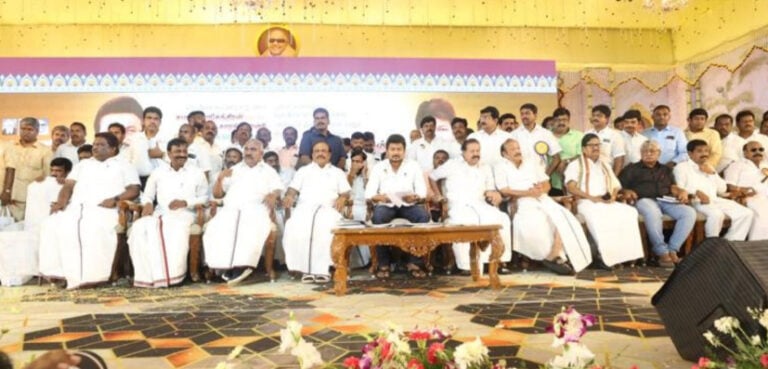 இறுதியாக முதல்வர் ஸ்டாலின் மணமக்களை வாழ்த்தும் ஆறு நிமிடங்கள் வீடியோவை ஸ்கிரீனில் போட்டுக்காட்டி அனைவரும் பார்த்தனர்.