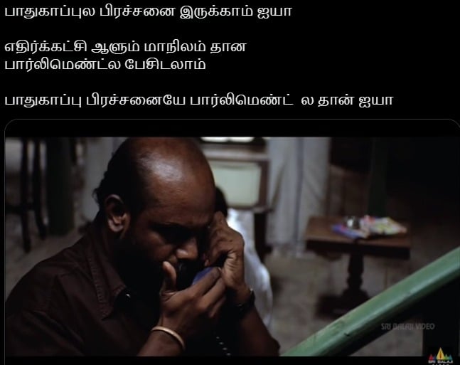 டீக்கடைக்காரரு மூஞ்சில சுடு தண்ணிய ஊத்துனாலும் பரவால்ல நான் இதை பேசியே தீருவேன்னு சொல்லிட்டு, ”ஏன்பா நாடாளுமன்றத்துக்கு அம்புட்டு பெரிய செங்கோல் வச்சாங்களே. செக்யூரிட்டிய போட்டாங்களான்னு” ரெண்டே வரியில திருக்குறள் மாதிரி கேட்டாரு.