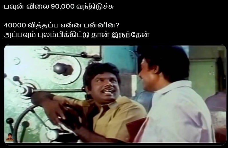 நண்பர் 1 ~ ஒரு பவுன் தங்கத்தின் விலையை விட 9 ஆயிரம் மடங்கு ஒரு டீயோட விலை குறைவு…. டீயோட விலை குறைவா இருக்கேன்னு பாசிட்டிவா பாரு.
