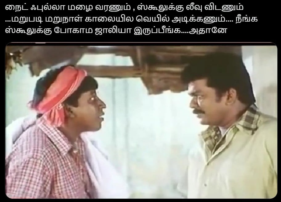 பள்ளிகளுக்கு லீவு விடுறதை தவிர மழையை நிறுத்த வேற வழி தெரியலை ஆத்தா..