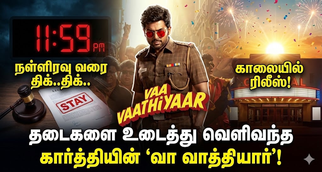 “படம் ரிலீஸ் ஆகுமா, ஆகாதா?” என்று நேற்று இரவு வரை நிலவிய பரபரப்புக்கு ஒருவழியாக முற்றுப்புள்ளி வைக்கப்பட்டுள்ளது. பல்வேறு நிதி நெருக்கடிகள் மற்றும் சட்டச் சிக்கல்களைக் (Financial and Legal hurdles) கடந்து, கார்த்தி நடித்துள்ள ‘வா வாத்தியார்‘ (Vaa Vaathiyaar) திரைப்படம் இன்று (ஜனவரி 14) திரையரங்குகளில் வெற்றிகரமாக வெளியானது.