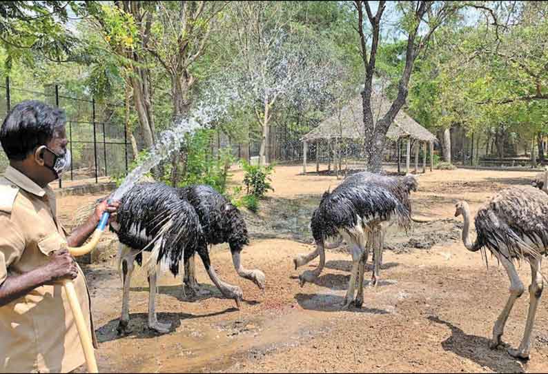 சென்னை அடுத்த வண்டலூரில் உள்ள அறிஞர் அண்ணா உயிரியல் பூங்காவில் கோடையை முன்னிட்டு விலங்குகளை பாதுகாக்கச் சிறப்பு ஏற்பாடுகள் செய்யப்பட்டுள்ளன.