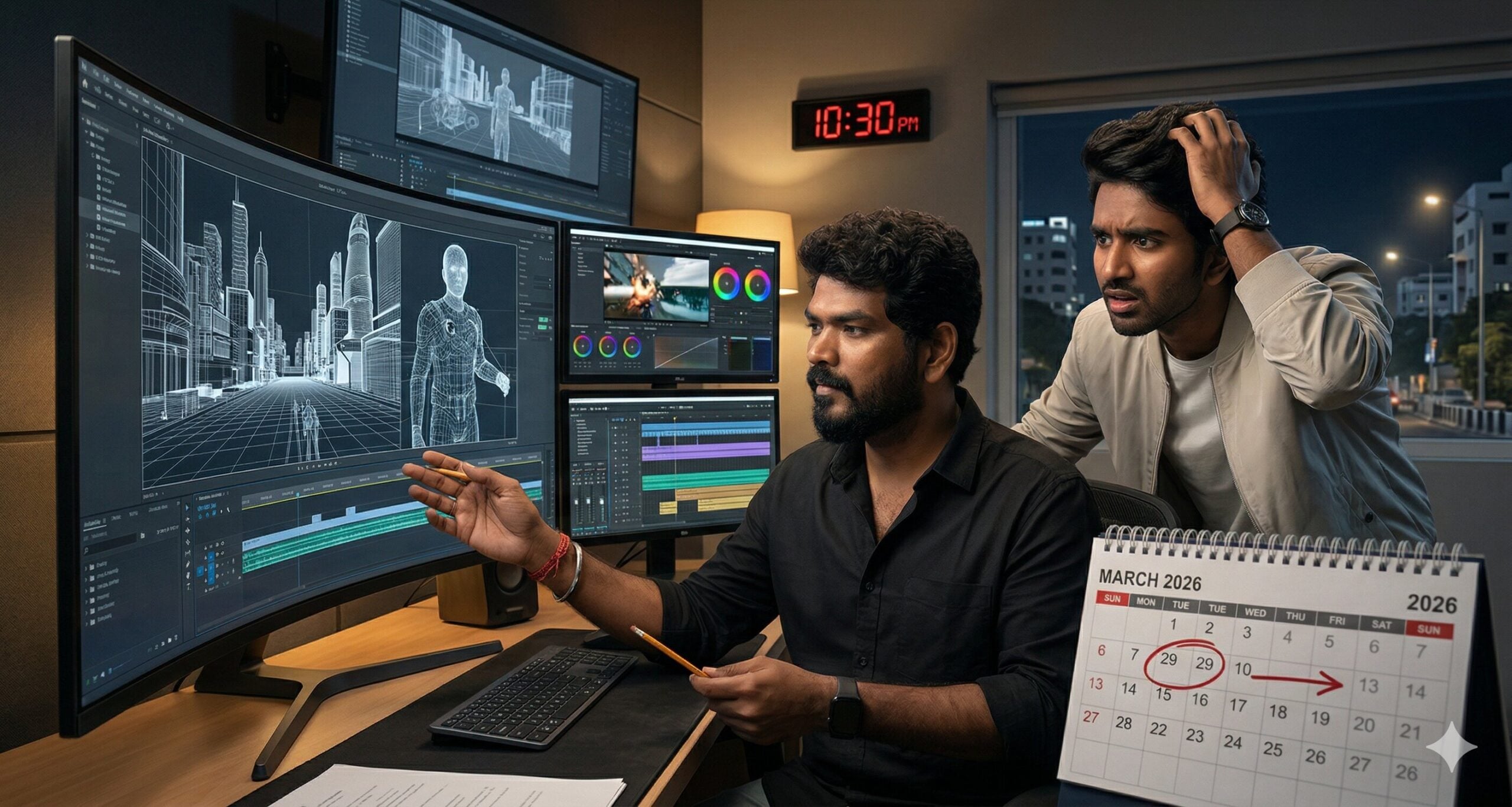 - போஸ்ட் புரொடக்ஷன் (Post-production): நவீனத் தொழில்நுட்பத்தையும், எதிர்காலக் காதலையும் (Futuristic Romance) பின்னணியாகக் கொண்ட கதை என்பதால், படத்தின் விஷுவல் எஃபெக்ட்ஸ் (VFX) பணிகளுக்குக் கூடுதல் நேரம் தேவைப்படுகிறது.