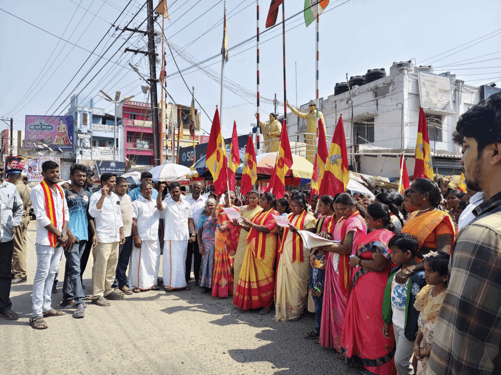 தங்களுக்கான உரிமை கிடைக்காத பட்சத்தில் அதை வலியுறுத்திக் கேட்டுப் பெற வேண்டிய நிலையில் தமிழ்நாட்டுப் பெண்கள் இருப்பதால்தான் தமிழக வெற்றிக் கழகம் சார்பாக இந்த அறவழி அடையாளப் போராட்டமானது நடைபெற்றது.