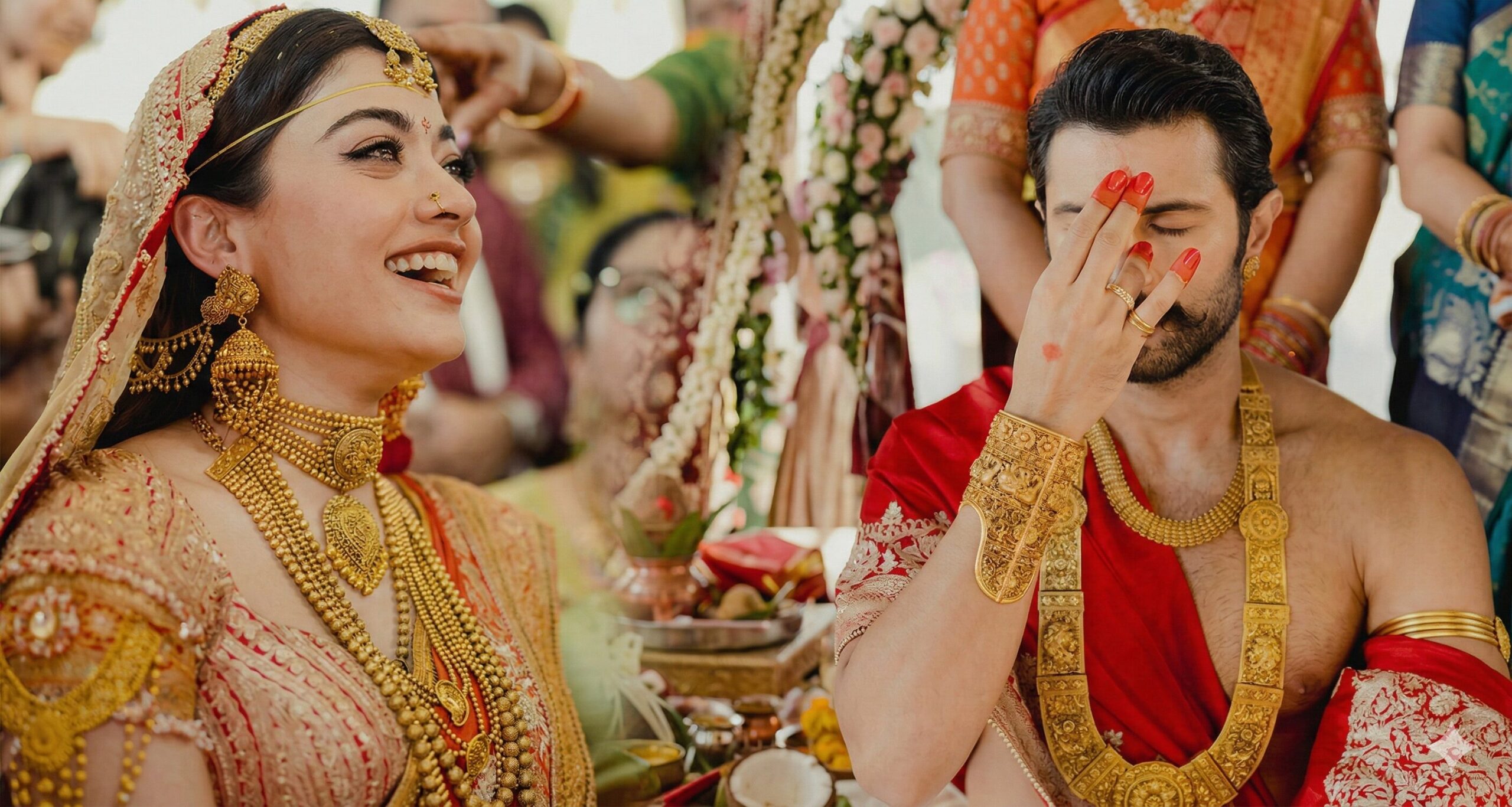 பொதுவாகவே திருமணங்களில் மணப்பெண்ணின் அலங்காரமே அதிக கவனம் பெறும். அந்த வகையில், ரஷ்மிகா ஒரு வாழும் தெய்வத்தைப் போல (Living Goddess) காட்சியளித்தார் என்று நகைகளை வடிவமைத்தவர்கள் பெருமையுடன் கூறுகின்றனர். ஹைதராபாத்தைச் சேர்ந்த பிரபல நகை வடிவமைப்பாளர்கள் (Shree Jewellers) பல மாதங்கள் உழைத்து இந்த ஆபரணங்களை (Jewellery Pieces) உருவாக்கியுள்ளனர். ரஷ்மிகா தனது திருமணத்தில் மொத்தம் 11 வகையான பாரம்பரிய நகைகளை அணிந்திருந்தார்.