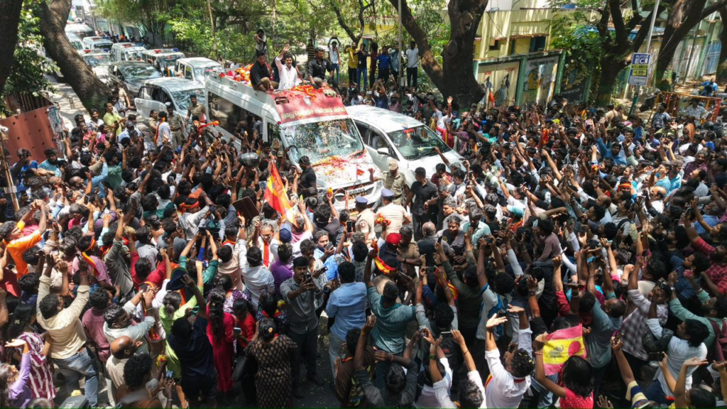 இதற்கிடையே தமிழக வெற்றிக் கழக தலைவர் விஜய் இன்று சைதாப்பேட்டை, நந்தனம் உள்ளிட்ட இடங்களில் பிரச்சாரம் செய்தார்.