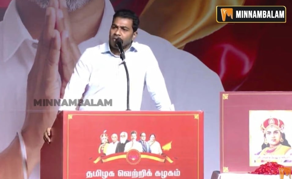 இதில் பேசிய அக்கட்சியின் முக்கியத் தலைவர்களில் ஒருவரான ஆதவ் அர்ஜூனா, ஆளும் திமுக.வை மிகக் கடுமையாக விமர்சித்துப் பேசியது தமிழக அரசியல் வட்டாரத்தில் பெரும் பரபரப்பை ஏற்படுத்தியுள்ளது.
