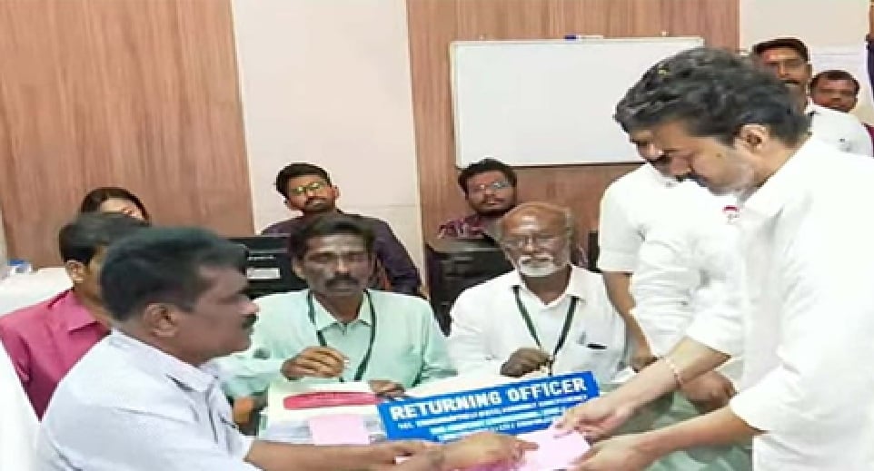 திருச்சி கிழக்கில் போட்டியிடுவதற்காக தமிழக வெற்றிக் கழக தலைவர் விஜய் இன்று (ஏப்ரல் 2) வேட்புமனு தாக்கல் செய்தார்.