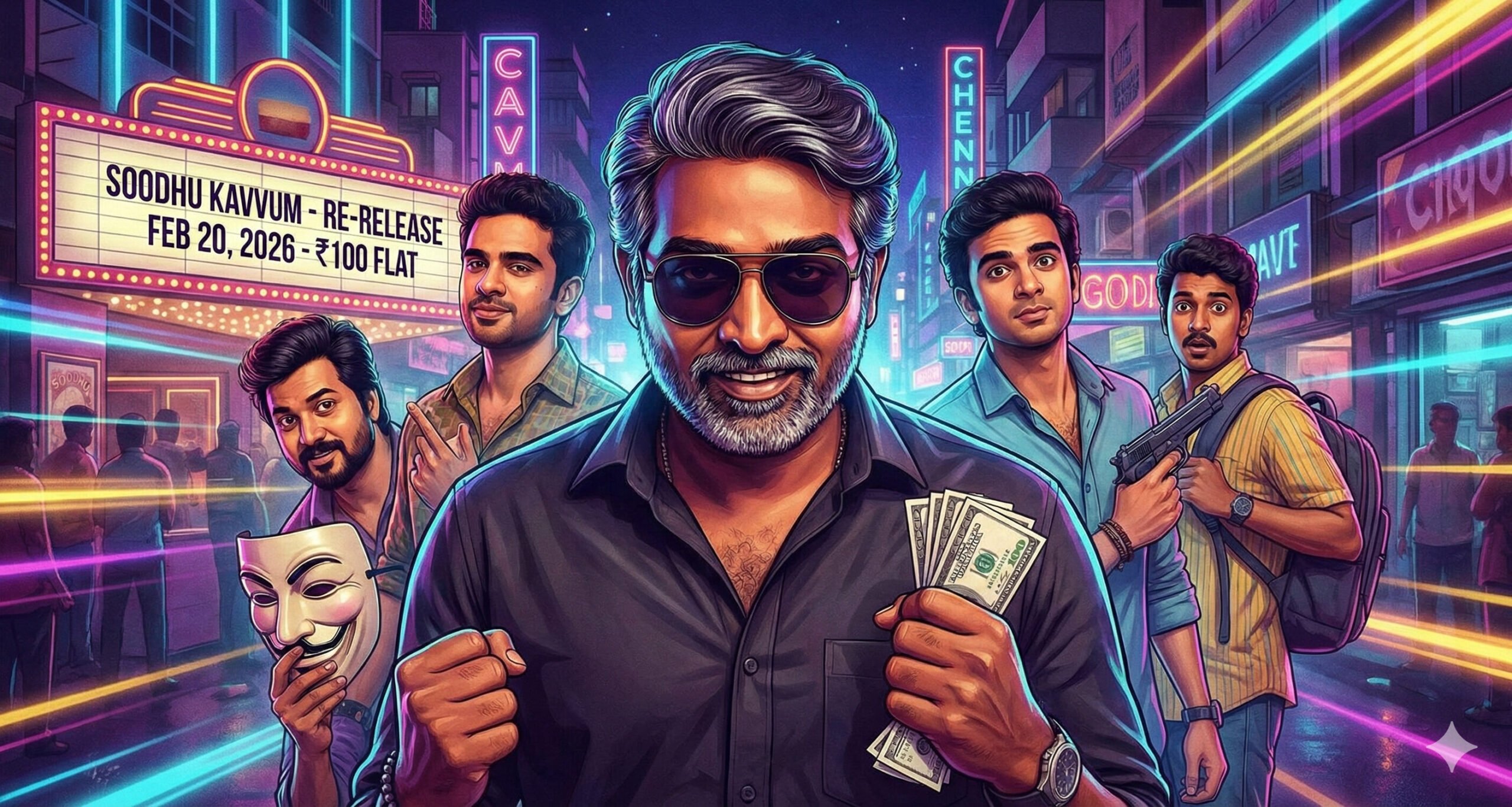 “பத்து காசு திருடினாலும் அது தப்புதான்… ஆனா இந்தத் திருடன் கொஞ்சம் ஸ்பெஷல்!” – பழைய திராட்சை ரசம் காலப்போக்கில் வீரியம் பெறுவதைப் போல, சில திரைப்படங்கள் எத்தனை ஆண்டுகள் கழிந்தாலும் அதன் சுவை குறைவதில்லை. அந்த வகையில், தமிழ் சினிமாவில் ‘பிளாக் காமெடி’ (Black Comedy) எனும் புதிய ஜானருக்குப் பாதை அமைத்துக் கொடுத்த ‘சூது கவ்வும்’ (Soodhu Kavvum) திரைப்படம், மீண்டும் வெள்ளித்திரைக்கு வரவுள்ளது.