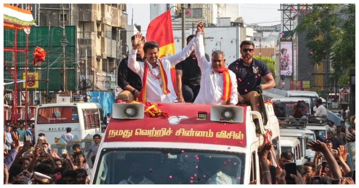 தமிழக வெற்றிக் கழகத்தின் தலைவர் விஜய் இன்று ஏப்ரல் 20-ந் தேதி பொன்னேரி, வில்லிவாக்கம், அண்ணா நகர் மற்றும் விருகம்பாக்கம் தொகுதிகளில் வாகன பிரசாரம் மேற்கொள்கிறார்.