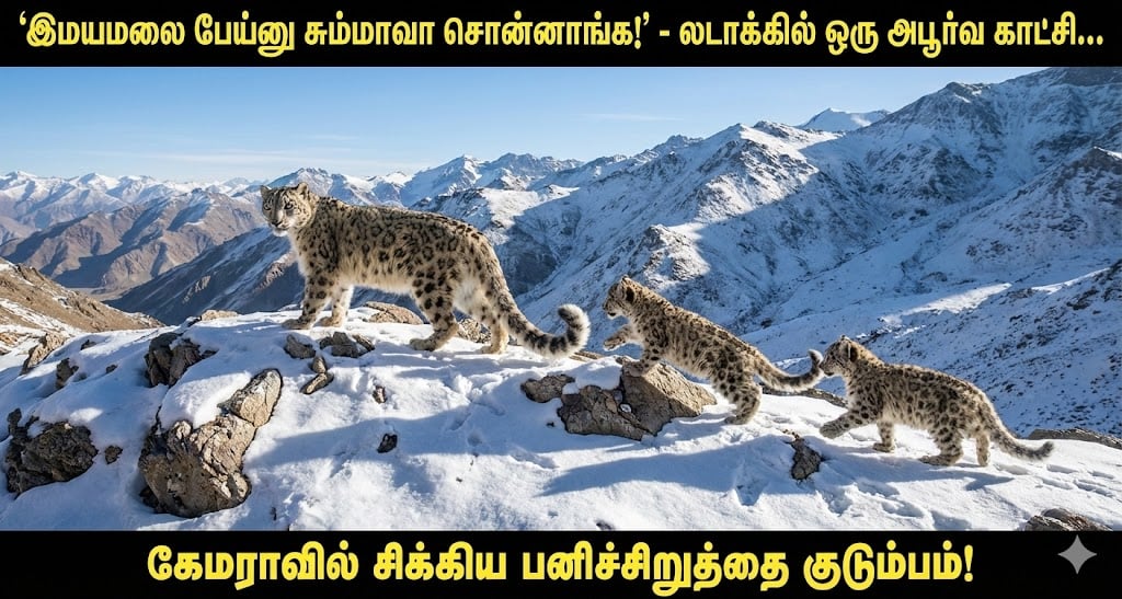 பல ஆண்டுகளாகக் காட்டுயிர் புகைப்படக் கலைஞர்கள் தவம் கிடந்தும் கிடைக்காத ஒரு காட்சி, இப்போது லடாக்கில் மிகத் தெளிவாகக் கிடைத்திருக்கிறது. தாய் பனிச்சிறுத்தை தனது குட்டிகளுடன் கம்பீரமாக வலம் வரும் வீடியோ ஒன்று தற்போது சமூக வலைதளங்களில் வைரலாகி, இயற்கையினாலேயே நம்மை வியக்க வைத்துள்ளது.
