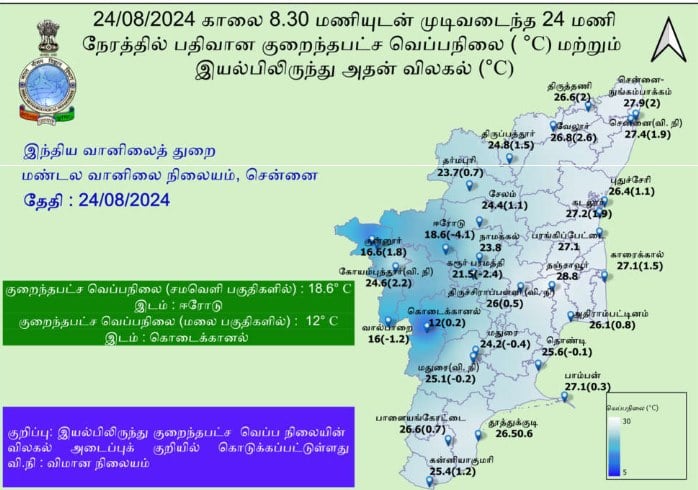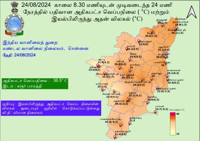 அதிகபட்ச வெப்பநிலை 36° செல்சியஸை ஒட்டியும், குறைந்தபட்ச வெப்பநிலை 27-28° செல்சியஸை ஒட்டியும் இருக்கக்கூடும்.
