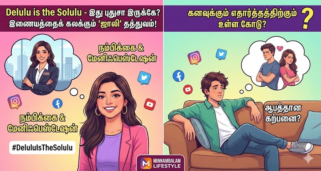 நீங்கள் இன்ஸ்டாகிராம் ரீல்ஸ் அல்லது ட்விட்டர் (X) பக்கம் சென்றால், #DeluluIsTheSolulu என்ற ஹேஷ்டேக்கை நிச்சயம் பார்த்திருப்பீர்கள். “என்னடா இது புது மொழி?” என்று குழப்பமாக இருக்கிறதா? இதுதான் இன்றைய ‘ஜென்-ஜி’ (Gen-Z) இளைஞர்களின் புதிய வாழ்க்கை மந்திரம்.