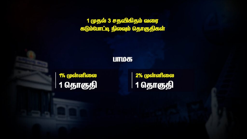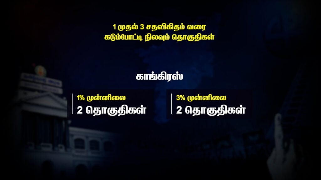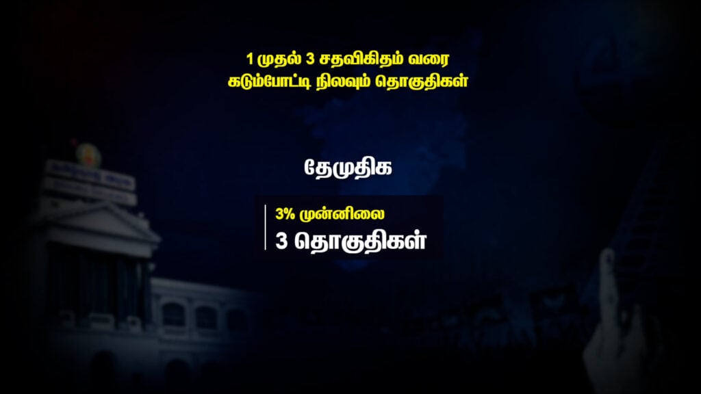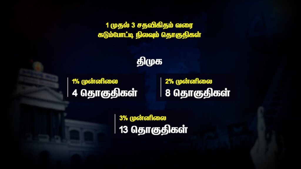 - திமுக- அதிமுக இடையேயான வாக்கு சதவீதம் என்பது 5 சதவீதம் மட்டும்.