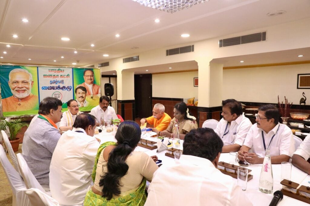 இதனையடுத்து நேற்று (மே 3) காலை 8 மணிக்கு சென்னையை அடுத்துள்ள காட்டாங்குளத்தூர் தனியார் ஹோட்டலில் ஜே.பி.நட்டா தலைமையில் பாஜக மையக்குழு கூட்டம் நடைபெற்றது.