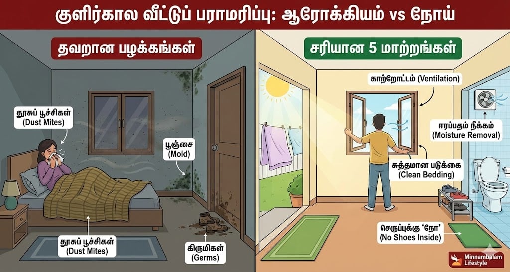 குளிர்காலத்தில் வீட்டைச் சுத்தமாக வைப்பது என்பது அழகு சார்ந்தது மட்டுமல்ல; அது உங்கள் குடும்பத்தின் ஆரோக்கியம் சார்ந்தது. சளி, காய்ச்சல் மற்றும் அலர்ஜி வராமல் தடுக்க, உங்கள் வீட்டைத் தயார் செய்ய வேண்டிய நேரம் இது.